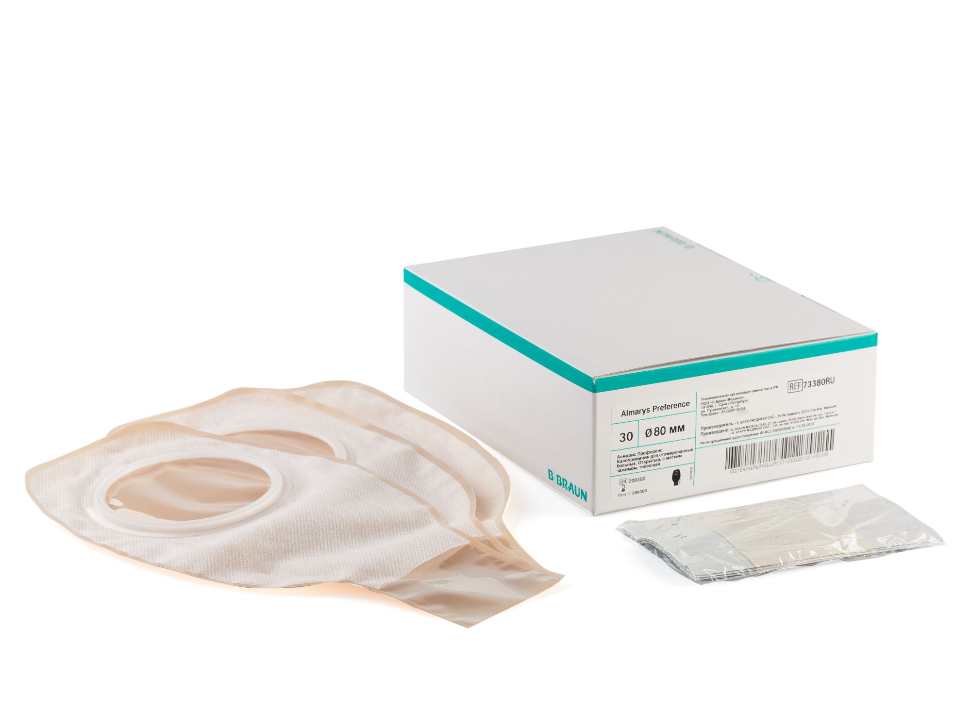 Калоприемники дренируемые фланец 80мм B.Braun Almarys Preference телесного цвета открытые, с гибким мягким зажимомМешок стомный для двухкомпонентной системы Алмарис Преференс Илео от компании БиБраун (Франция).