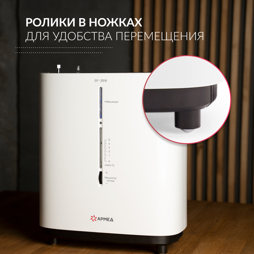 Переносной концентратор кислорода с дополнительной возможностью передвижения с помощью встроенных роликов. Модель обладает целым рядом преимуществ, таких как высокая производительность, простота в использовании и обслуживании, наличие выхода для ингаляций, подсветки дисплея и голосового сопровождения. Привлекательный своей многофункциональностью прибор для дома, небольших клиник и оздоровительных центров.