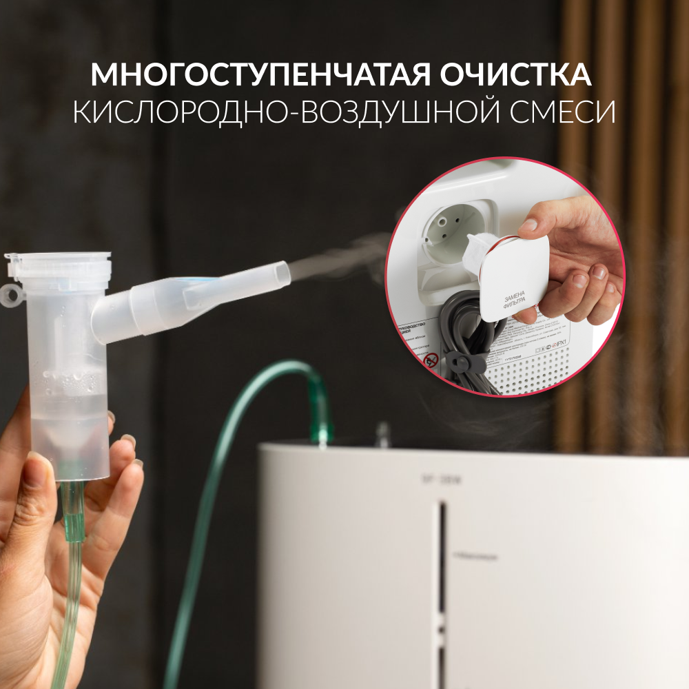 Оснащение Диффузор; Канюля 2 м; Канюля 5 м; Комплект для ингаляций; Пульт ДУ